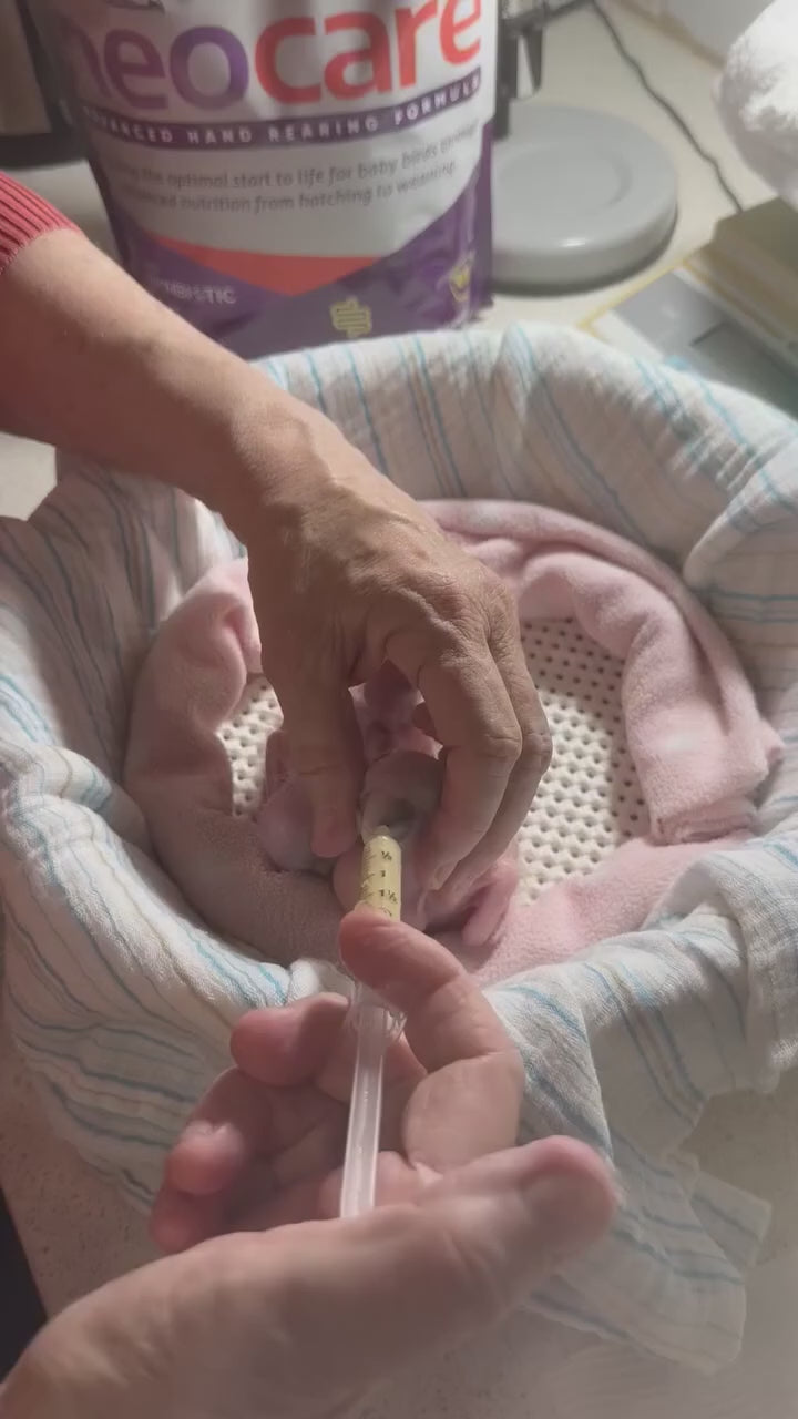 Neocare should not be used with any other supplement, unless advised by a veterinarian. Neocare is a veterinary balanced food, mixing other foods or supplements will dilute the nutrition and unbalance a young birds diet. If hand feeding from hatching, an electrolyte formula should be fed for the first 24+ hrs or until the bird passes its first dropping. Neocare is then fed at a runny consistency and thickened over a period of days.