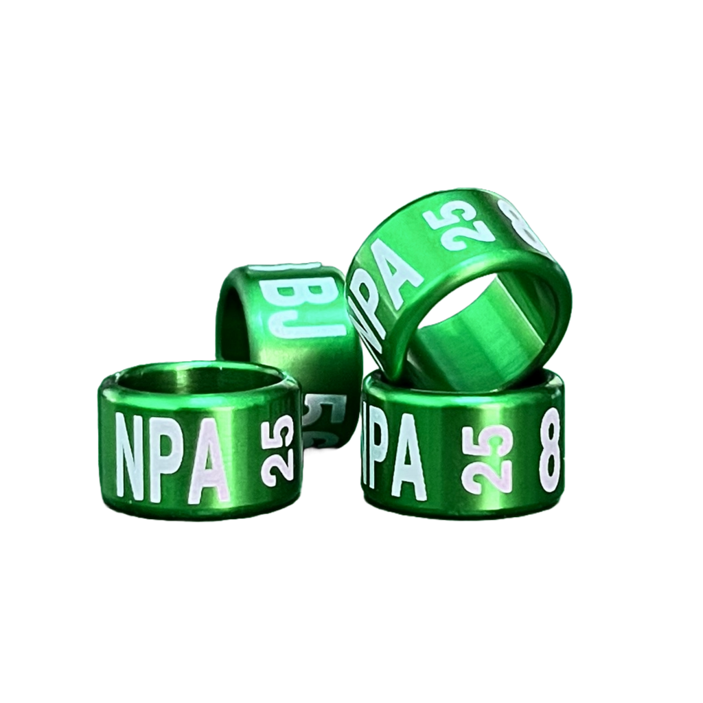 America's foremost All-Breed Pigeon Club, the NPA, has served the fancy over eighty years. Please state NPA band size when ordering. Sizes 7,8,9,10,11,12. If you don't know the size, you can just tell us what breed your birds are and one of our bird specialist will be able to assist you.
